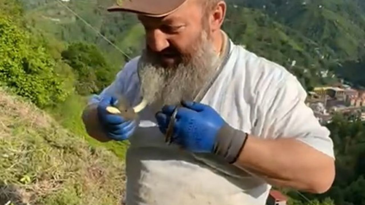 Rize’nin Çayeli ilçesine bağlı Büyükköy Beldesi’nde yaşayan Ali Dilmaç isimli çay müstahsili, önümüzdeki günlerde açılması beklenen çay sezonuna hazırlık için tarlasına girerek bakımlarını tamamlamak istedi. Tarlasında yabani otları temizleyen Dilmaç, otların arasında kıvrılan yılanı fark ederek zarar vermeden yakaladı. Halen hayatta olan yılanın nasıl bir şey olduğunu anlatan Dilmaç’ın yanında bulunan yakını ise o anları cep telefonu kamerası ile kaydetmeye başladı.
