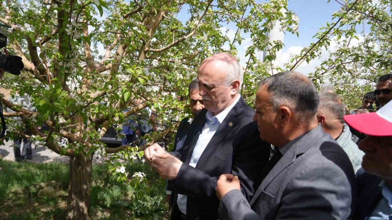 Türkiye Ziraat Odaları Birliği (TZOB) Genel Başkanı Şemsi Bayraktar, Niğde’de zirai dondan etkilenen elma bahçelerinde incelemelerde bulundu.