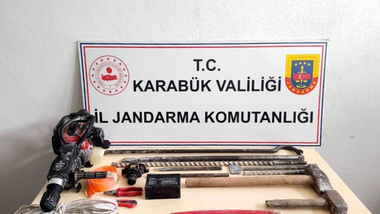 Öte yandan, Safranbolu Cumhuriyet Savcılığı koordinesinde Safranbolu ilçesinde düzenlenen operasyonda, izinsiz kazı yaptığı belirlenen 2 şüpheli suçüstü yakalandı. Şüphelilerin kazı faaliyetlerinde kullandığı 1 adet hilti, 5 adet hilti ucu, 1 adet keski, 1 adet manivela demiri, 1 adet kafa feneri, 1 adet balyoz, 1 adet çekiç, 1 adet pense, 1 adet maket bıçağı, 1 adet halat, 1 adet uzatma kablosu, 1 adet akü ve 3 adet plastik boruya el konuldu.