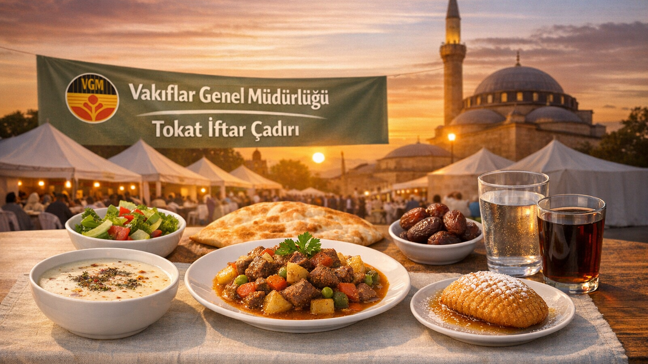 Vakıflar Genel Müdürlüğü, 2026 Ramazan ayında da geleneksel iftar sofralarını kurmaya devam edecek. Türkiye’nin 25 farklı bölgesinde faaliyet gösteren Vakıflar Bölge Müdürlükleri, Tokat'ta da Ramazan ayı süresince ücretsiz iftar yemeği sunacak. Peki, ilimizde 29 gün boyunca sürecek Vakıflar Genel Müdürlüğü'nün (VGM) Ramazan İftar Menüsü'nde Bugün Hangi Yemekler Var?