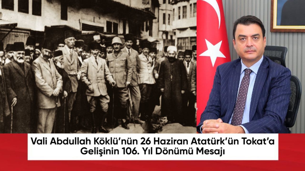 Tokat Valisi Abdullah Köklü, Gazi Mustafa Kemal Atatürk’ün Tokat’a gelişinin 106. yıl dönümü dolayısıyla bir kutlama mesajı yayımladı. Vali Köklü, mesajında Tokat’ın bağımsızlık mücadelesindeki önemine vurgu yaparak, "Milletimizin bağımsızlık yolunda attığı kutlu adımların izinde, Tokat’ın tarihte üstlendiği müstesna rolü bir kez daha gururla anıyoruz." ifadelerini kullandı.