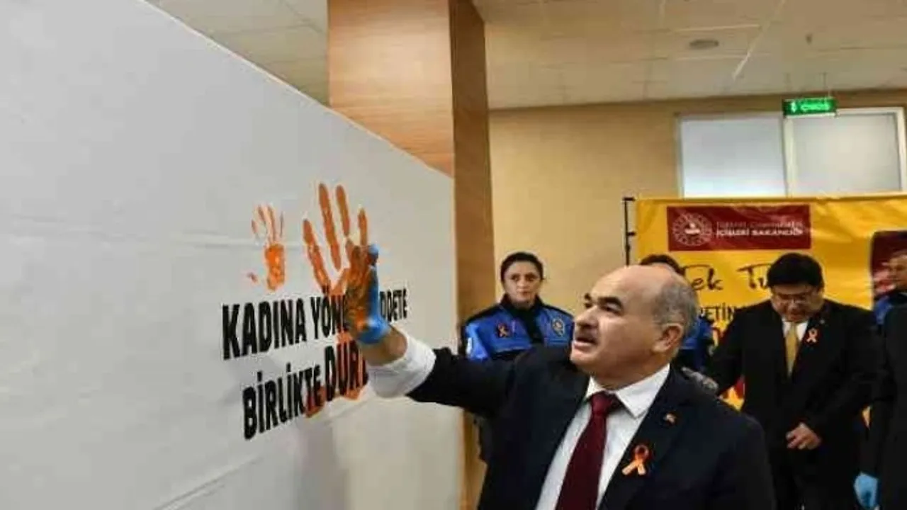 Programın sonunda Vali Dağlı, Samsun Cumhuriyet Başsavcısı Mehmet Sabri Kılıç ve Emniyet Müdürü Urhal “Kadına Yönelik Şiddete Birlikte Dur Diyelim” yazılı panoya boyayla el bastı.