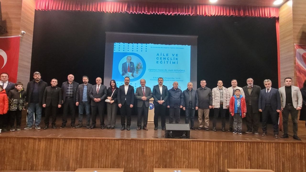 İlçe Milli Eğitim Müdürü Resül Özata, konferansın açılışında yaptığı konuşmada, eğitimin ailede başladığını belirterek, "Okulda devam eder ve hayat boyu sürer. Bu kapsamda düzenlediğimiz bir etkinlik. Halit hocama da davetimizi kırmadığı için şükranlarımı sunuyorum." dedi.