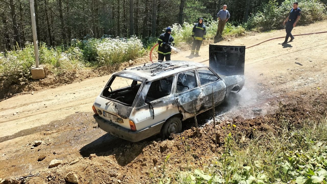 Kısa sürede büyüyerek aracın tamamını saran alevler, itfaiye tarafından söndürüldü.