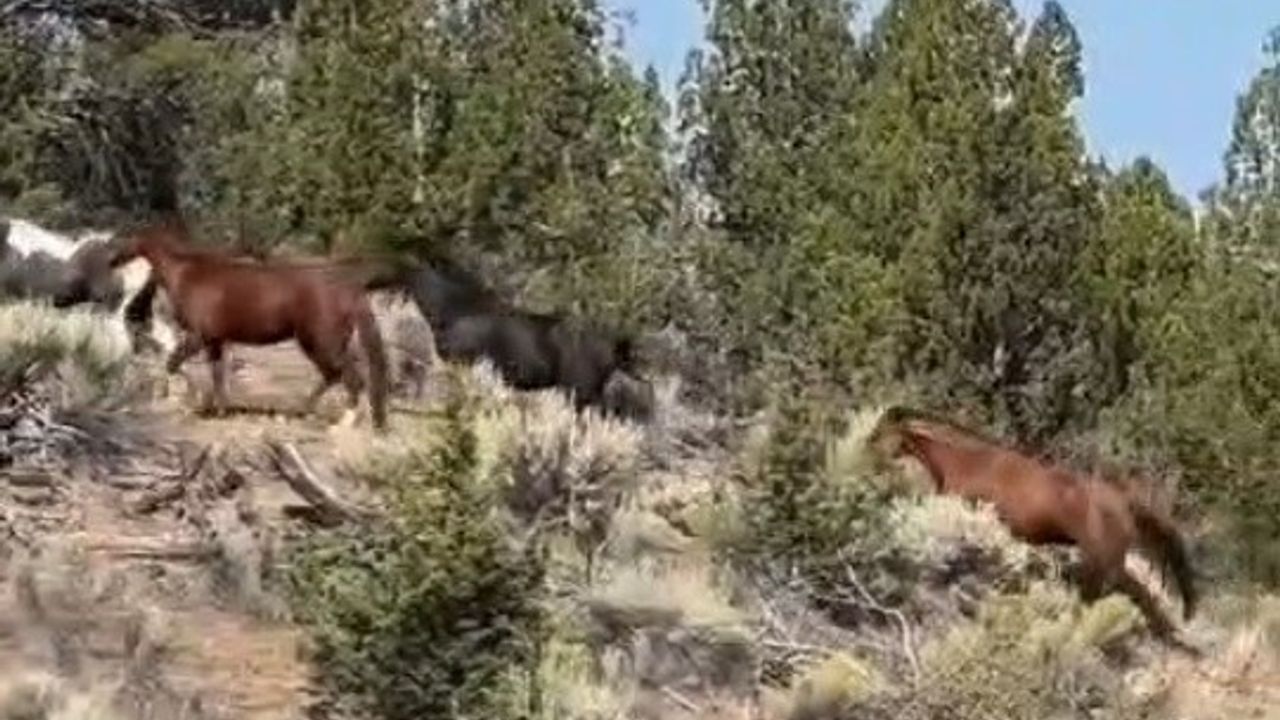 Kütahya’nın Tavşanlı ilçesi Yaylacık ormanında yaşayan yılkı atları, doğa yürüyüşü için yola çıkan kişi tarafından görüntülendi.