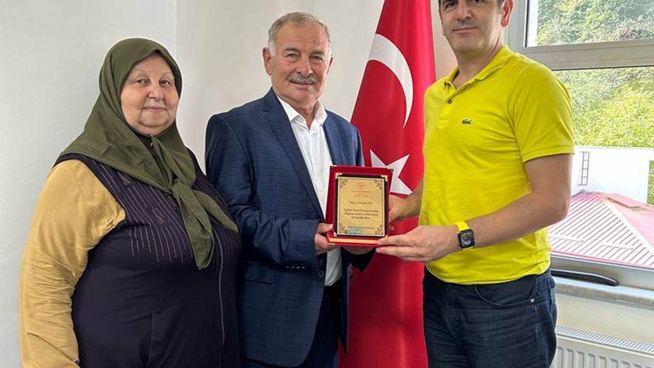 GİRESUN( AA) - Yağlıdere Devlet Hastanesi Başhekimi İbrahim Yuva, hastaneye cihaz bağışlayan hayırsevere teşekkür plaketi verdi.