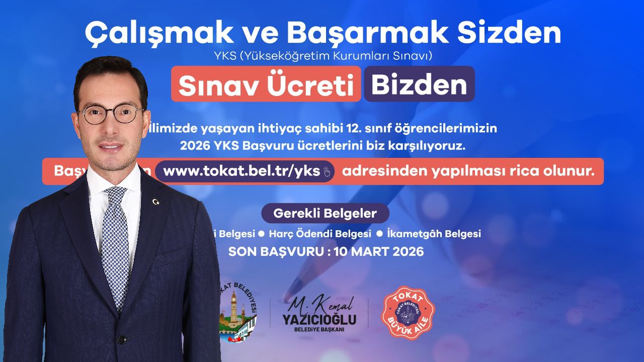 Tokat Belediye Başkanı Mehmet Kemal Yazıcıoğlu, eğitimin her zaman öncelikleri olduğunu vurguladı. "Geleceğimizin teminatı olan gençlerimizin eğitim yolculuklarında yanlarında olmaktan gurur duyuyoruz" diyen Başkan Yazıcıoğlu, "Çalışmak ve başarmak sizden, YKS sınav ücreti bizden" ifadelerini kullandı.
