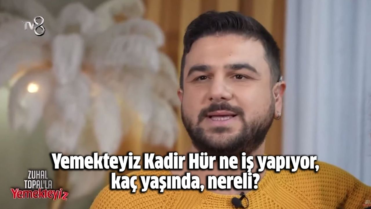 Tv 8 ekranlarında yayınlanan Zuhal Topal'la Yemekteyiz programının 106. haftasındaki 25 Ocak 2024 Perşembe gününe damgasını vuracak yarışmacısı Kadir Hür, izleyicilerin merakını cezbetmeye devam ediyor. Peki, Yemekteyiz Kadir Hür kimdir, nereli, kaç yaşında, mesleği ne, evli mi? İşte ayrıntılar...