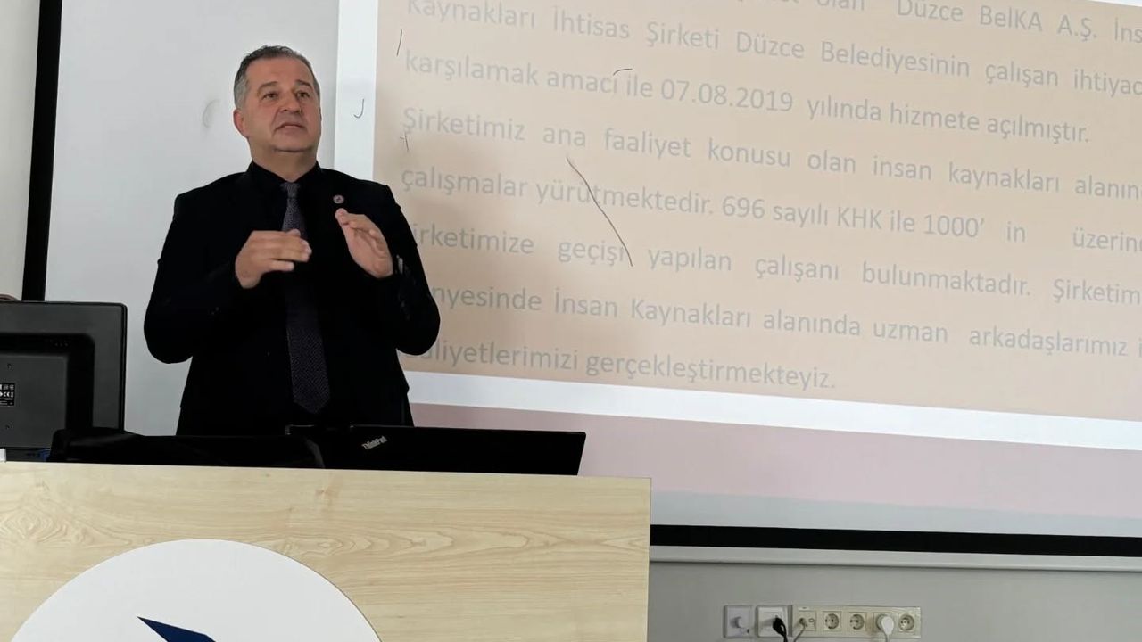 Düzce BelKA İnsan Kaynakları A.Ş. Genel Müdürü Erdem Yılmaz üniversite öğrencilerine etkili CV hazırlamanın püf noktaları aktararak işverenlerin bir özgeçmişi ortalama 6 saniyede incelediğini söyledi.