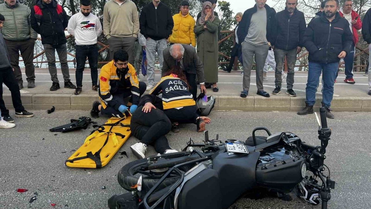 Ordu’nun Ünye ilçesinde yolcu indirdiği sırada duran otomobile motosiklet çarptı. Kazada motosiklet sürücüsü yaralandı.