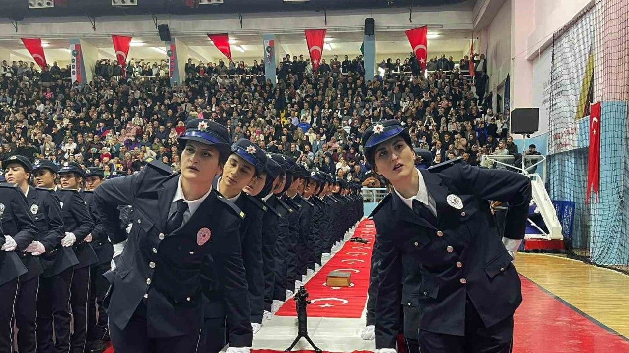 Polis adaylarına seslenen Vali Mehmet Ali Özkan, "Anadolu’nun coğrafyasında birer ateş olarak, birer ocak yakmak üzere al bayrağa sahip çıkmak üzere yola çıkıyorsunuz. Buraya kiminiz Ayşe, kiminiz Zeynep, kiminiz Fatma olarak geldiniz. Bugün yetiştiniz, bu şerefli üniformayı hak ettiniz. Artık kahraman Türk polisi olarak Anadolu’ya dağılıyorsunuz” dedi.