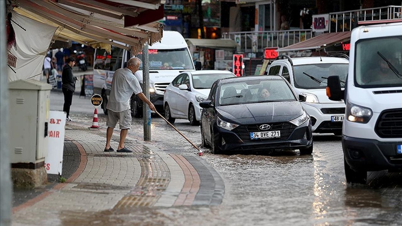 Muğla'nın Fethiye ilçesinde kısa süreli etkili olan sağanak, hayatı olumsuz etkiledi.