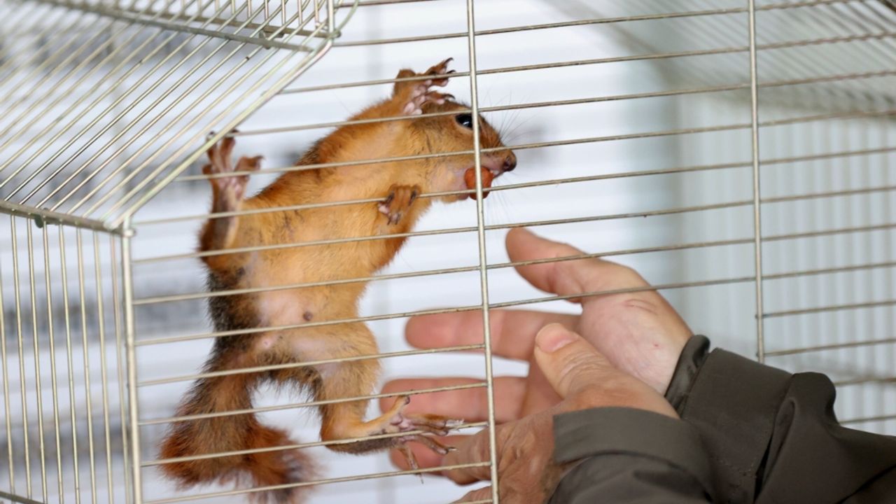Biberonla beslenen sincap yavrusu, rehabilitasyon sürecinin ardından doğal yaşam alanına bırakılacak.