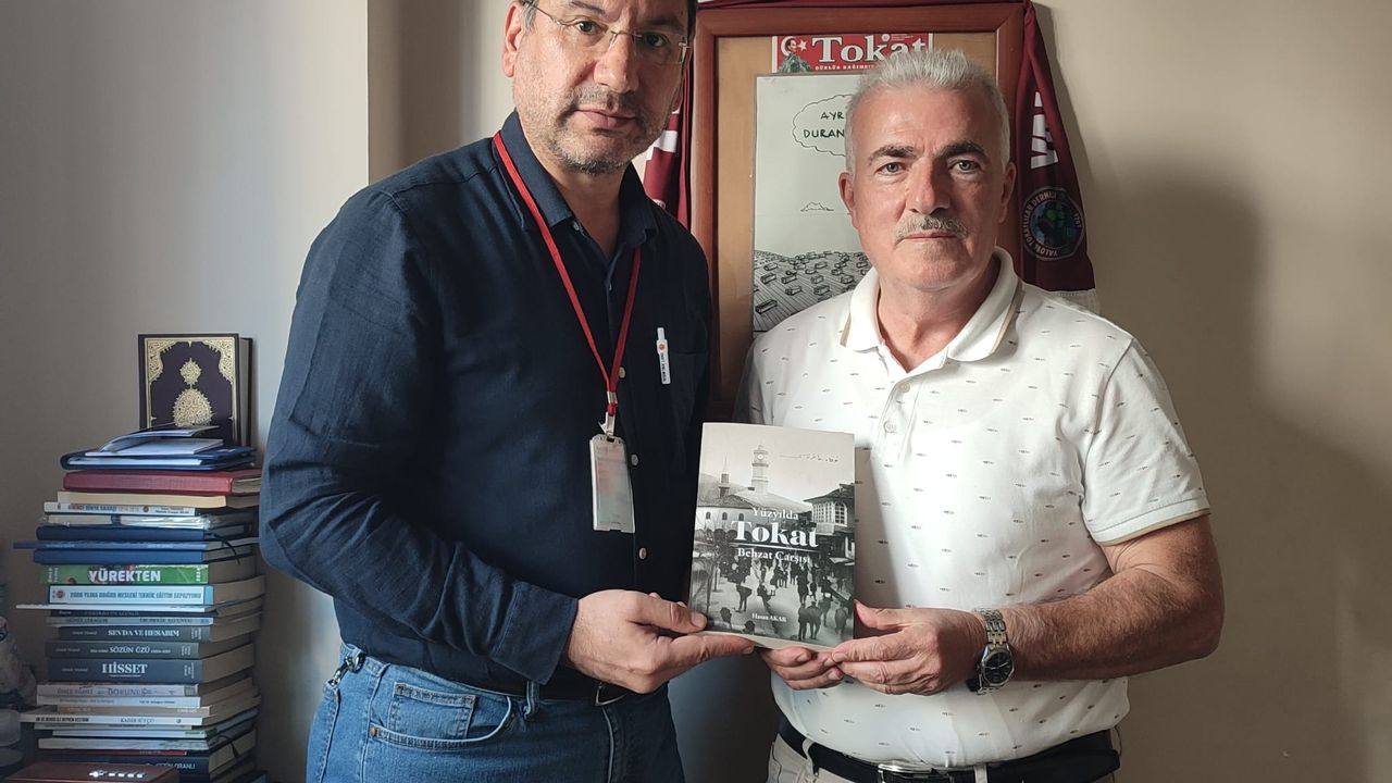 Tokat’ın tarihi semtlerinden olan Behzat Çarşısı, Araştırma-Yazar Akar’ın çalışmasıyla kitaba aktarıldı. Yüzyılda Tokat Behzat Çarşısı kitabı bastırılan Hasan Akar, 12 Ekim 2025 Pazar günü tertip edilecek imza günü ile okurlarına sunacak. Yazar Akar, yeni kitabını Tokat Hürsöz Gazetesi Sorumlu Yazı İşleri Müdürü Fatih Kılıç’a takdim etti. 12 Ekim tarihindeki imza gününün davetiyesini bıraktı.