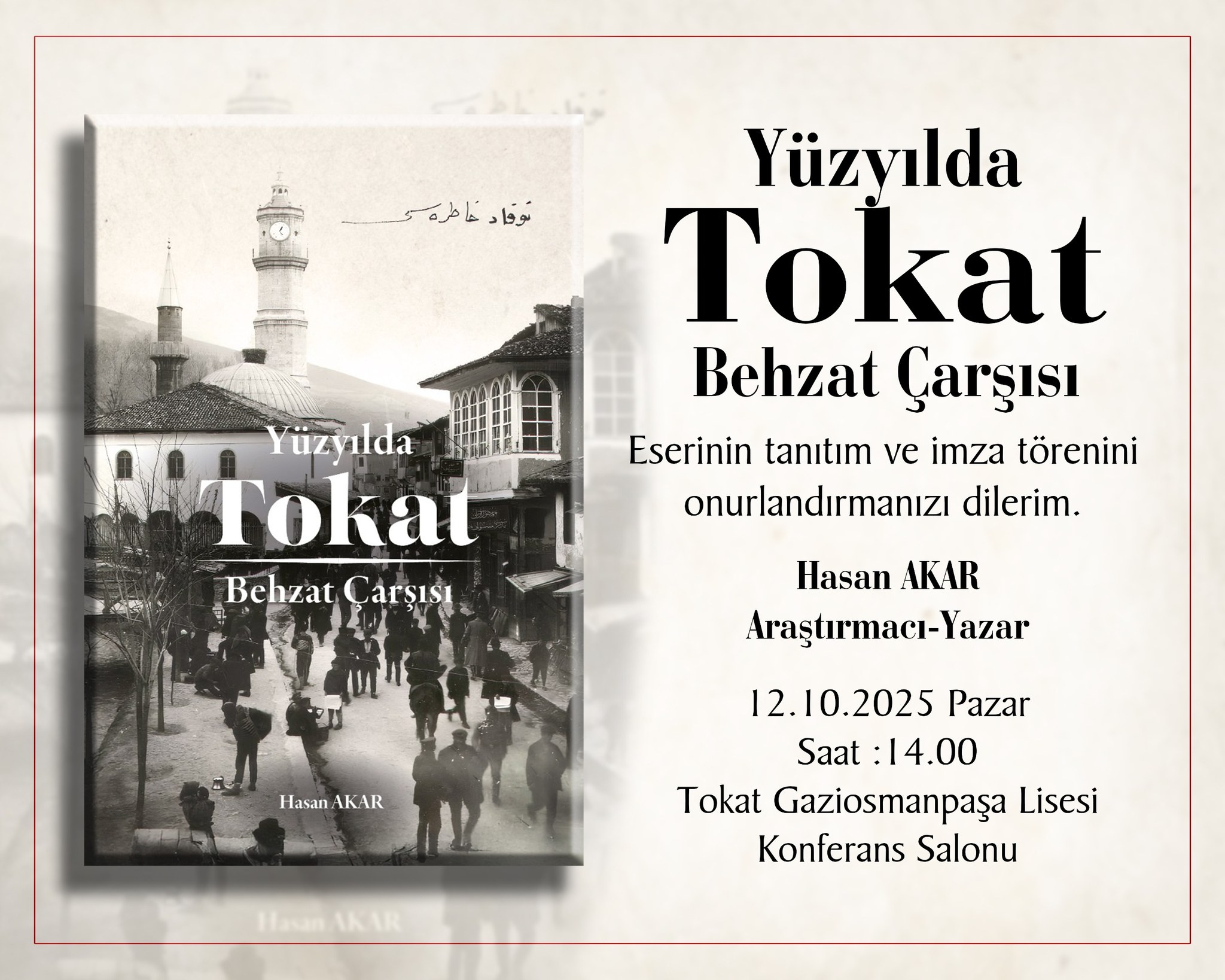 Gazeteci Fatih Kılıç, Araştırmacı-Yazar Hasan Akar’ın Yüzyılda Tokat Behzat Çarşısı eserinin hayırlı uğurlu olmasını dilerken “Behzat Çarşısı'nda kimler gelip/geçmiş, kimler bu tarihi semtte adından söz ettirmiş? Çok değerli bir çalışma. Önsözde sayın Bakanımız Ali Şevki Erek'in yazısı, hissiyatları var: "Tarihe, geçmişe, geleceğe, Tokat'ıma ve bizlere muhteşem bir katkı daha geliyor." diye yazılı. YÜZYILDA TOKAT BEHZAT ÇARŞISI eseri basıldı ve okuruyla buluşuyor. 12 Ekim Pazar günü saat 14.00'da Gaziosmanpaşa Lisesi Konferans Salonu'nda imza günü olacak.” Diye yazarak kamuoyuna duyurdu.