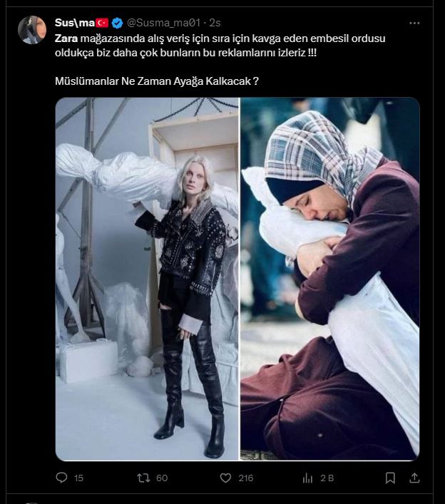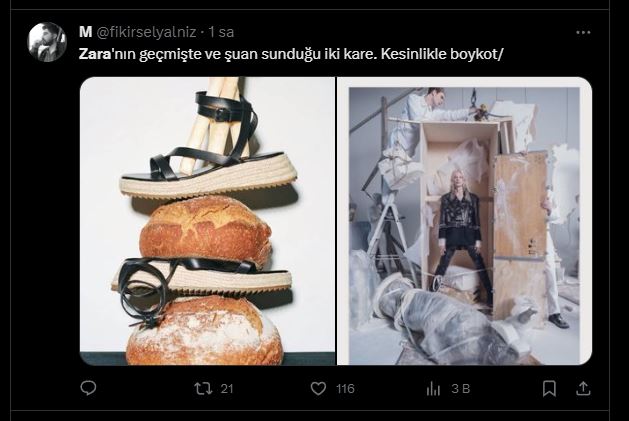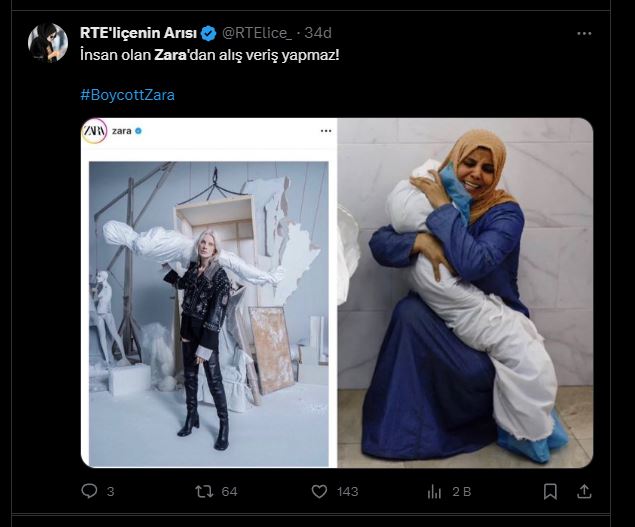 Zara, sosyal medya hesaplarından yaptığı paylaşımı hızla sildi, ancak olaya dair bir açıklama yapmadı. Boykot çağrıları ise gittikçe yaygınlaşıyor.