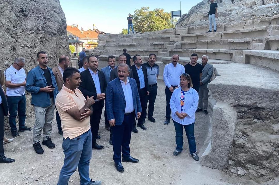 Zile Kültür sayfası, Vali Numan Hatipoğlu’nun antik tiyatro kazısında yaptığı incelemelerden bilgi paylaştı ve “Vali Numan Hatipoğlu, bulunan kalıntıların heyecan verici ve önemli olduğunu belirterek, kazıya desteklerinin devam edeceğini ifade etti. Öte yandan tiyatronun sahne kısmının evlerin altında olduğu, söz konusu evlerin kamulaştırılması gerektiği belirtildi. Kazının tamamlanması ile önemli bir turizm noktası olacaktır. Darısı kalenin iç ve diğer kısımlarda da arkeolojik kazılarının başlamasıdır.” ifadelerini kullandı.