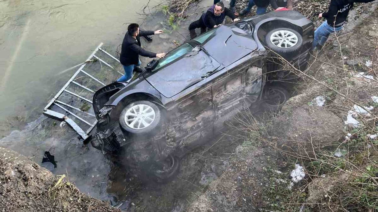 Bariyerlere çarpan otomobil 20 metre yükseklikteki köprüden dereye uçtu. İhbar üzerine kaza yerine sağlık ve polis ekipleri sevk edildi. Çevredekilerin ve polis ekiplerinin yardımıyla araçtan çıkartılan sürücü F.S., ilk müdahalesinin ardından hastaneye kaldırıldı.